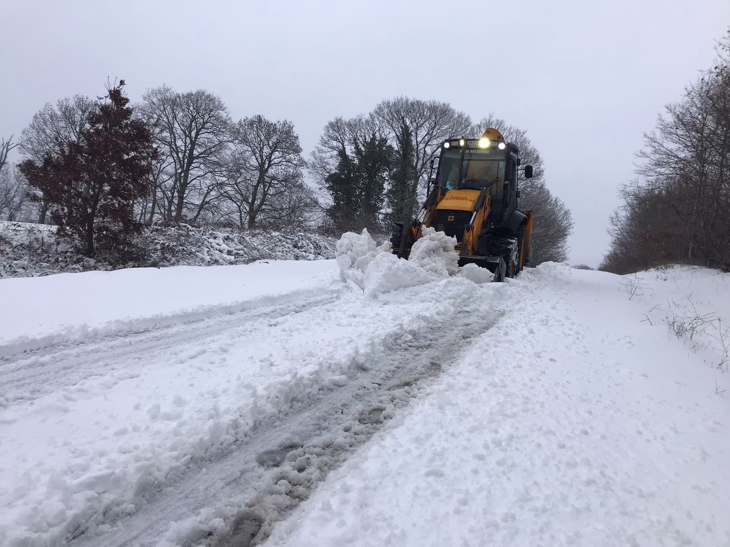 Yüksek kesimlerde etkili olan kar yağışıyla birlikte belediye ekipleri kar küreme çalışmalarını başlattı.