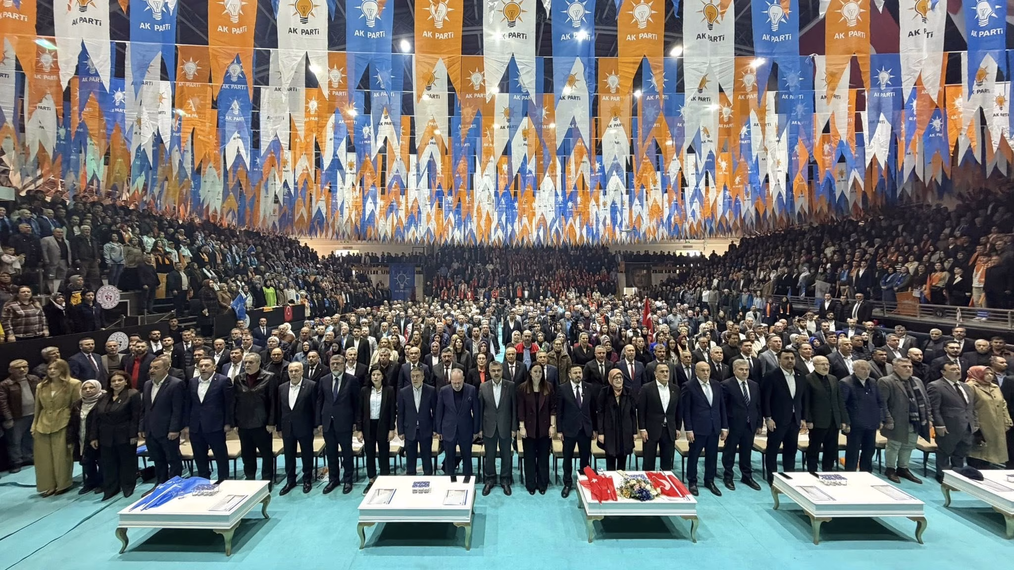 AK Parti Balıkesir İl Başkanlığı’nın düzenlediği partinin uç beyleri olan mahalle başkanlarının katıldığı istişare toplantısı Kurtdereli Kapalı Spor Salonunda yapıldı. Saygı duruşu ve İstiklal Marşının okunması sonrası 17 Türk devletinin bayraklarının geçişi sonrası halk oyunları gösterisi gerçekleştirildi.
