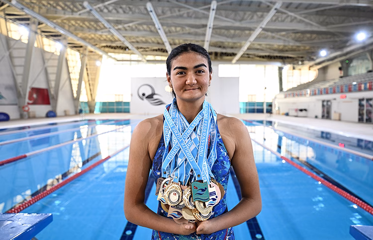 Gaziantep’te okullarda yürütülen “Yetenek Kaşifi Projesi” kapsamında keşfedilen doğuştan bedensel engelli genç kız, su korkusunu yenerek başladığı yüzmede aralarında Türkiye şampiyonluklarının da bulunduğu 48 madalya kazandı.